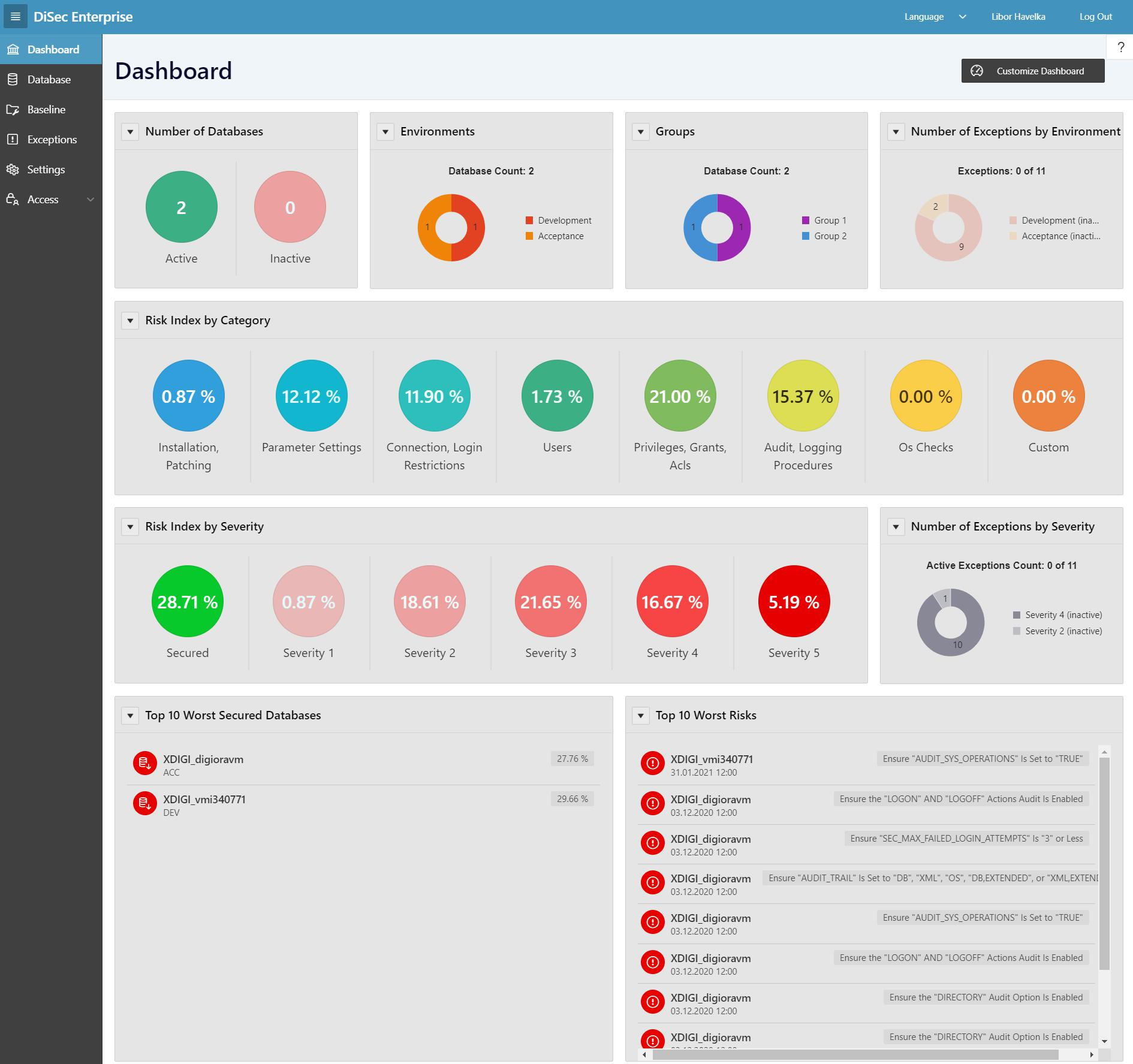 Disec Enterprise is fully automated system for gathering and evaluating security of your database. Not only ORACLE but also MS SQL server.