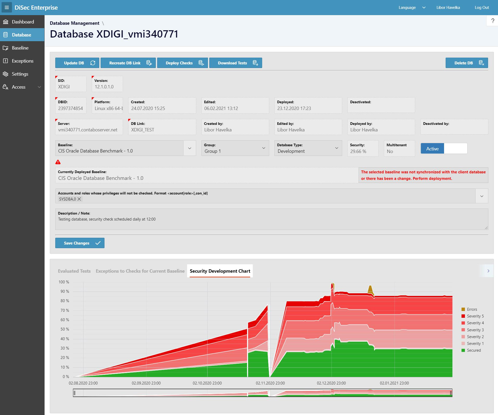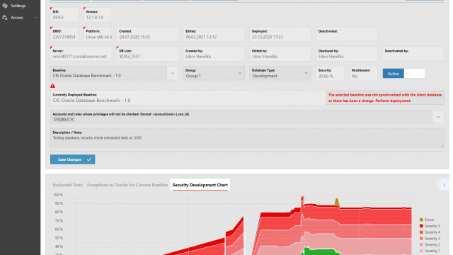Systém byl od základu navržen na základě našich praktických zkušeností s řešením zabezpečení databáze. Buď z pohledu DBA nebo z pohledu auditora. Tento nástroj pomůže udržet vaše databáze v předem stanovených hranicích a okamžitě reportuje jakékoliv změny které mohou mít vliv na zabezpečení.