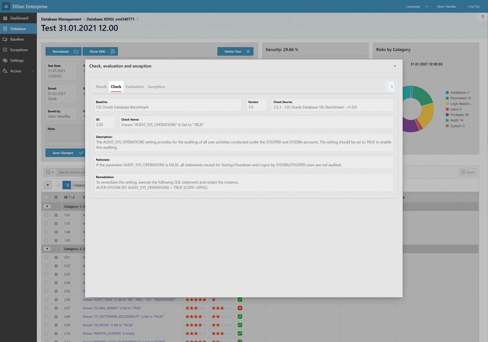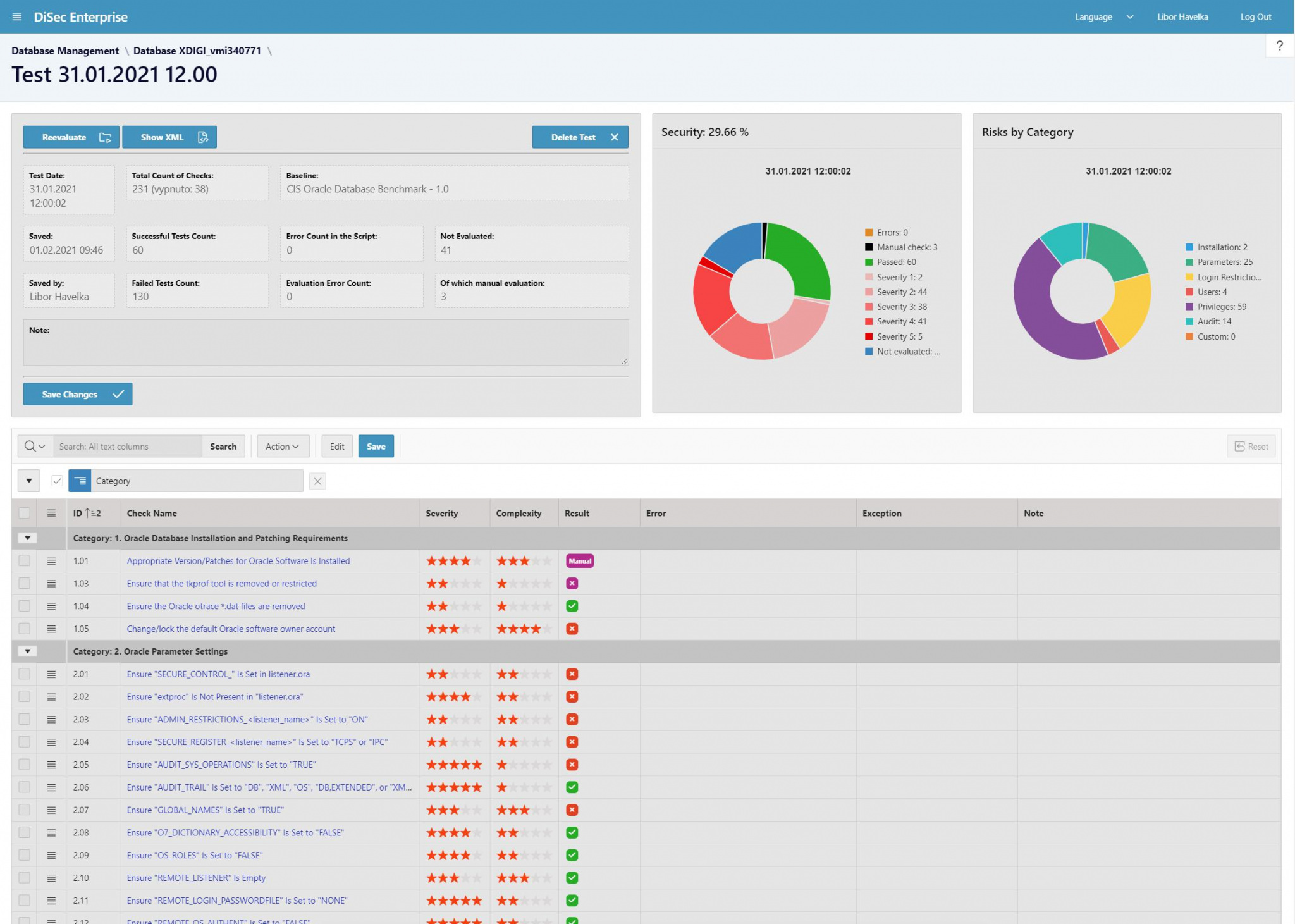 Jedna věc je nainstalovat a nakonfigurovat databázi, případně provést optimalizaci procesů, ale co zabezpečení databáze? Tato důležitá oblast je velmi často opomíjena a podceňována. Databázová kontrola a audit obsahují širokou škálu bezpečnostních kontrol a testů pro zjištění úrovně zabezpečení.